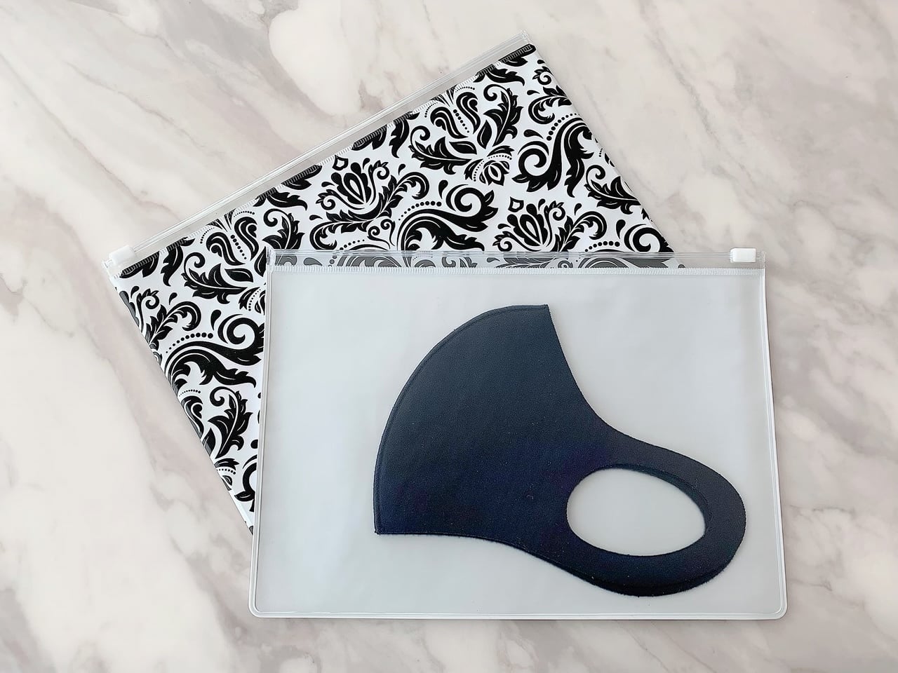 ファスナー付き半透明ポーチ1枚(ダマスク柄)