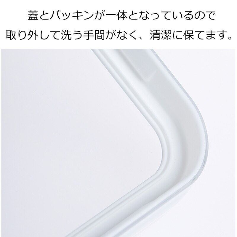 フタとパッキンを一体化することで、開けやすく洗いやすい設計になっています。さらに、容器と蓋が透明なので引き出しの中に並べた時、中に入っているものが一目瞭然です。